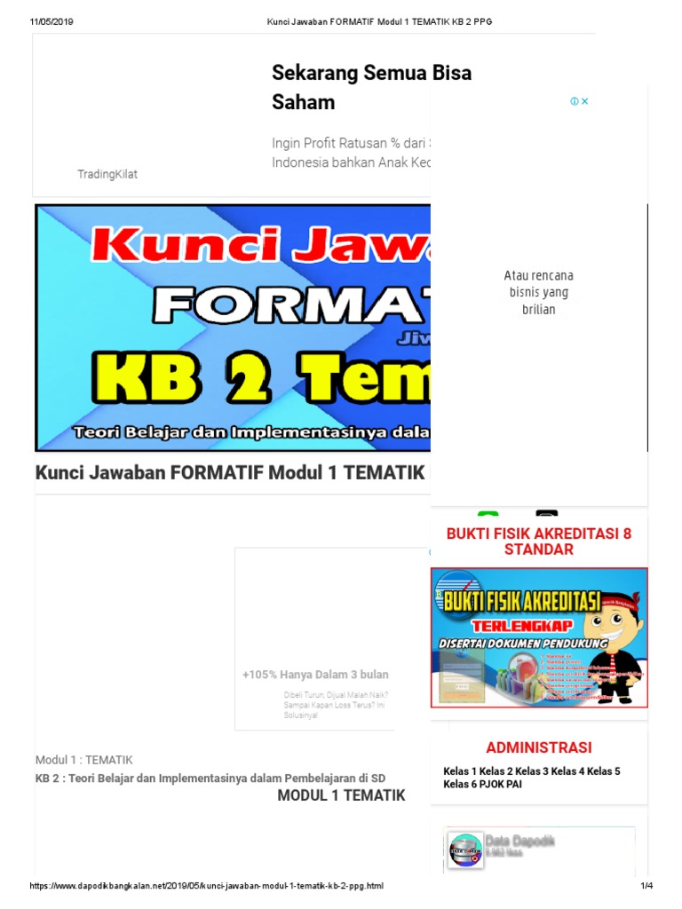 Jawaban Tes Formatif Modul 1 Kb 4 Tematik Peranti Guru from imgv2-2-f.scribdassets.com Kali ini kami akan membagikan soal dan kunci jawaban modul pedagogik tes formatif modul 1 kb 3 ppg modul pedagogik : Pada postingan kali ini kami akan berbagi soal dan kunci jawaban soal formatif modul ipa ppg kb 1. Materi formatif kb 1 adalah tentang teori belajar behavioristik. Jawaban test soal formatif modul 5 kb 4 ips test formatif m 5 kb 4 1. 55 kelas 8 matematika smp mts semester i2. Pembahasan ppg 2020 kali ini berupa soal dan kunci jawaban tes formatif modul ips kb 1. Ketika akan menggunakan suatu model pembelajaran guru perlu mempertimbangkan hasil belajar apa yang dapat dicapai oleh siswa sebagai akibat dari model pembelajaran yang digunakan tersebut. Soal dan kunci jawaban tes formatif modul matematika kb 1 ppg terbaru.
