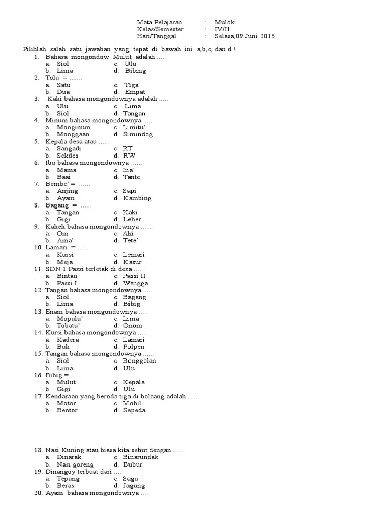 Soal mulok bahasa sasak kelas 5 sd. Check spelling or type a new query. We did not find results for: Maybe you would like to learn more about one of these?